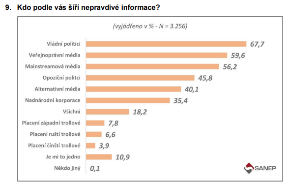 Lidé nejméně důvěřují politikům a veřejnoprávním médiím (graf 9).